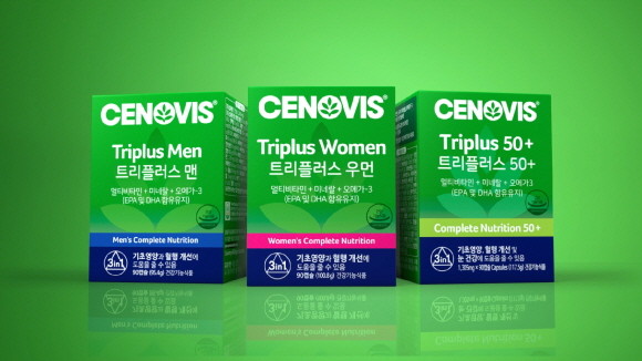 세노비스가 멀티비타민 '트리플러스'의 3 in 1 포뮬러 차별화를 내세우며 성별·연령별 맞춤 영양을 제안한다. © 세노비스