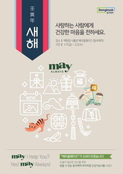 동국제약(086450)이 다가오는 설을 맞아 '메이올웨이즈(MayAlways)' 오프라인 매장과 동국제약 공식 헬스케어 온라인 쇼핑몰 'DK SHOP'에서 명절 프로모션을 진행한다.