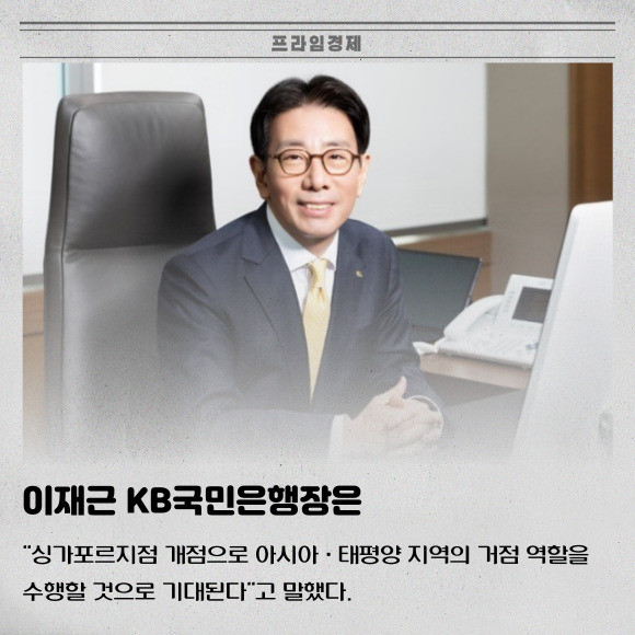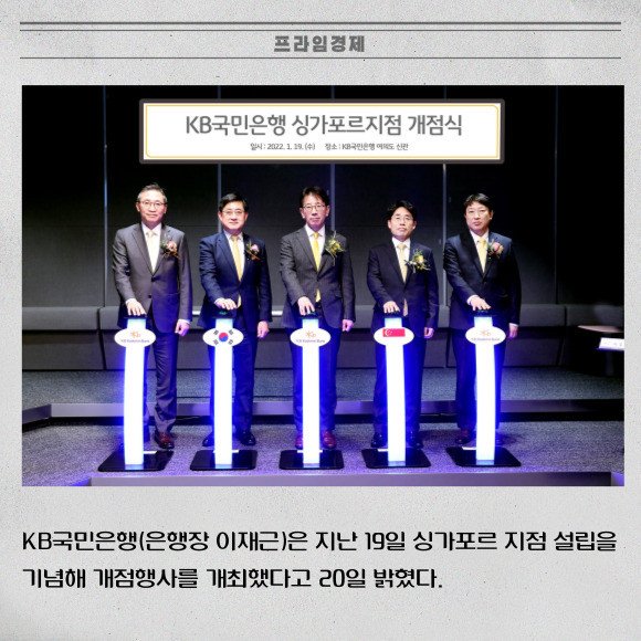 [프라임경제] KB국민은행(은행장 이재근)은 지난 19일 싱가포르 지점 설립을 기념해 개점행사를 개최했다고 20일 밝혔다.