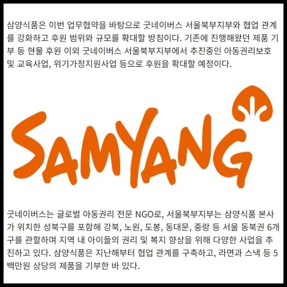[카드] 삼양식품-굿네이버스 '아동복지 증진' 맞손