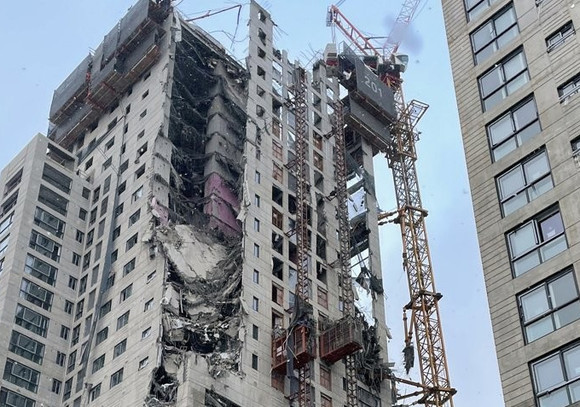 지난 11일 광주 화정동 신축 아파트 공사 현장에서 외벽이 무너져내리는 사고가 발생했다. ⓒ 연합뉴스