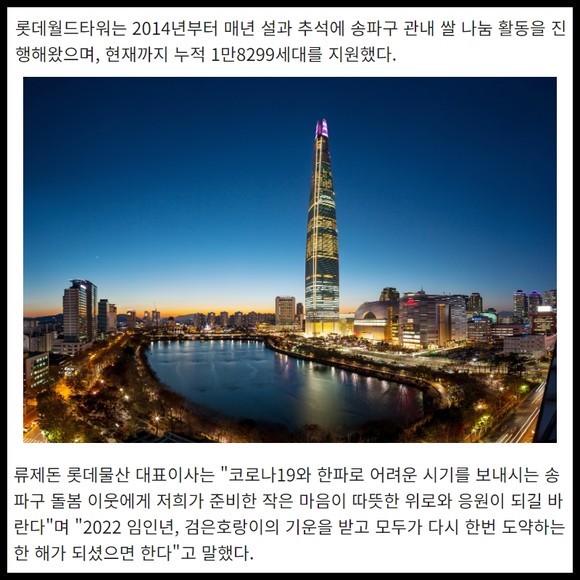 [카드] 롯데월드타워, 설맞이 '복(福)나눔 쌀' 전달