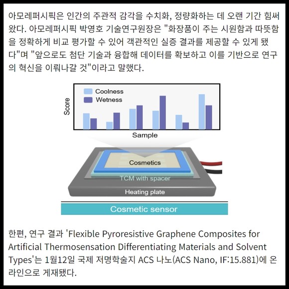 [카드] 아모레퍼시픽, 피부 감각 측정 '촉각 센서' 개발