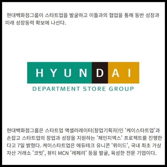 [카드] 현대백화점그룹, 함께 성장할 스타트업 찾는다