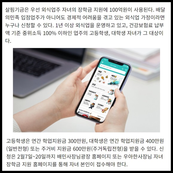 [카드] 우아한형제들, 외식업주 자녀들에 최대 600만원 장학금 지원