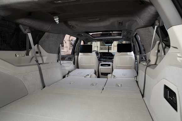 특히 에스컬레이드 ESV는 3열까지의 좌석을 모두 편 상태에서 1175ℓ 라는 기본 트렁크공간을 확보했으며 3열 폴딩 시 2665ℓ, 2~3열 모두 폴딩 시 4044ℓ의 적재공간을 기록한다.