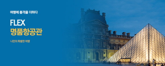 이제 한 번을 떠나도 편안하고 안전하게, 최고의 만족을 추구하는 여행 트렌드를 겨냥해 비즈니스 및 프리미엄 이코노미 항공권 서비스를 강화, 비즈니스 및 프리미엄 이코노미 클래스 해외 항공권 전용 예약 페이지인 'FLEX 명품 항공관' 코너를 신설했다.