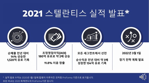 한편, 스텔란티스는 23일 오후 2시 CET(한국시간으로 23일 오후 10시)에 라이브 웹캐스트 및 컨퍼런스콜을 통해 2021년 성과 발표를 공개했다.