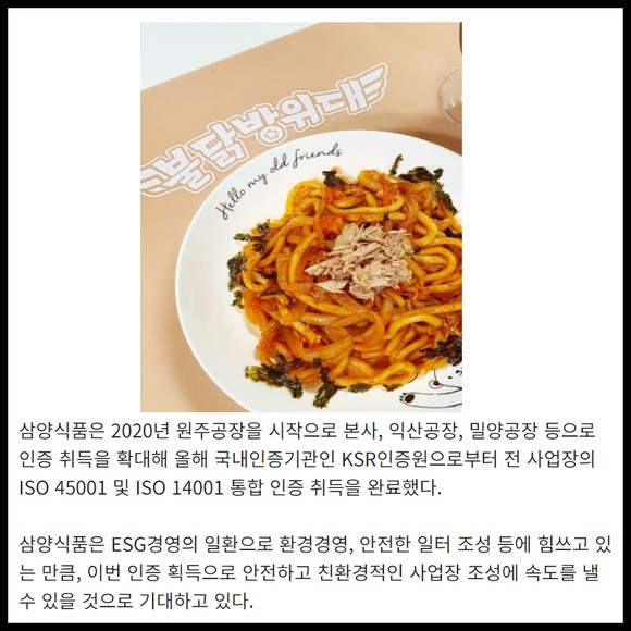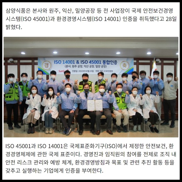 [카드] 삼양식품, 국제 안전보건·환경경영시스템 인증 취득