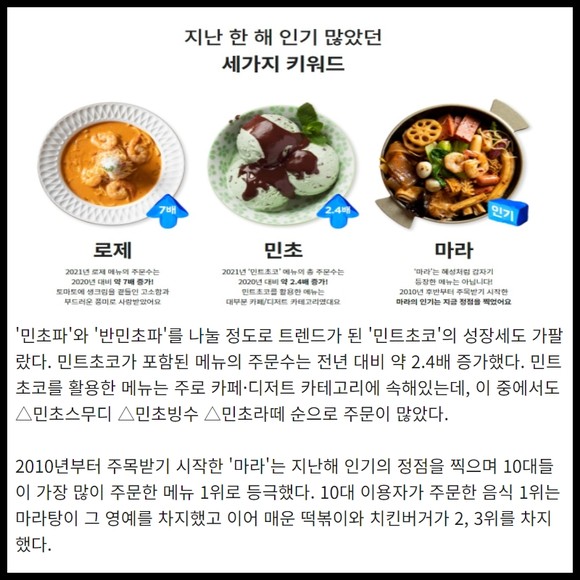 [카드] 지난해 '배달 입맛'··로제 주문 7배↑, 10대는 마라