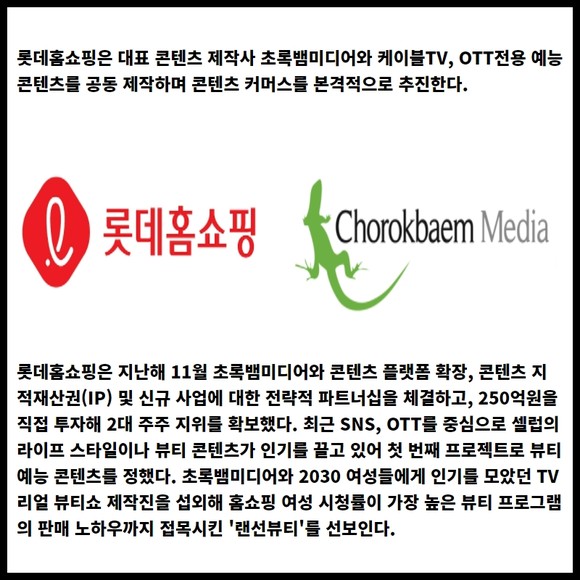 [카드] 롯데홈쇼핑, 뷰티 예능 제작 '콘텐츠 커머스' 본격화