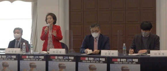 박 예비후보는 10일 한국프레스센터에서 열린 '미래를 위한 교육혁명' 세미나에서 이같이 말했다. 해당 세미나는 윤석열 대통령 당선자의 코딩교육 확대와 SW교육 강화 공약을 뒷받침하는 토론회로 탄탄교육과 21세기교육포럼(대표 박선영) 주최로 열렸다.