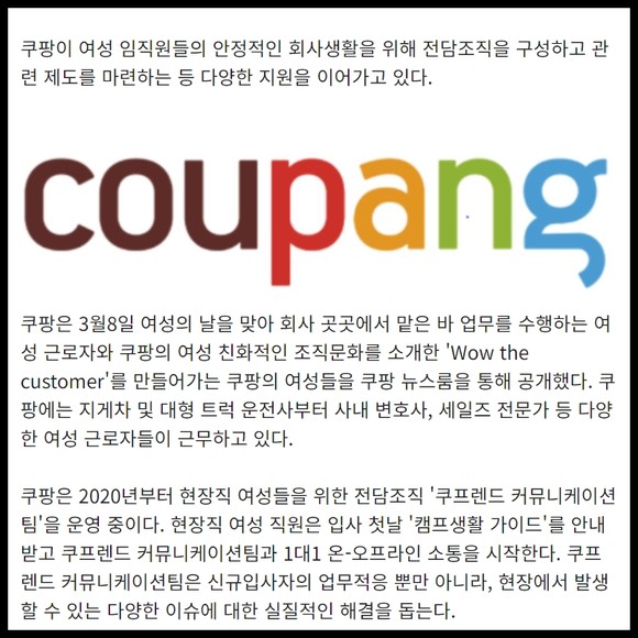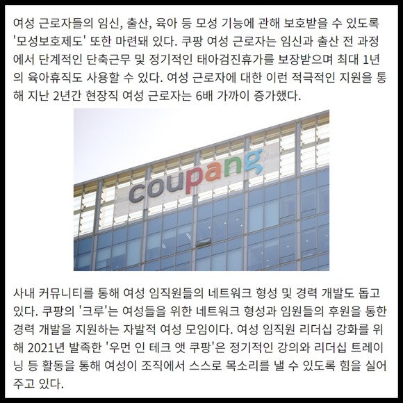 [카드] 쿠팡, 여성 친화 조직문화 소개