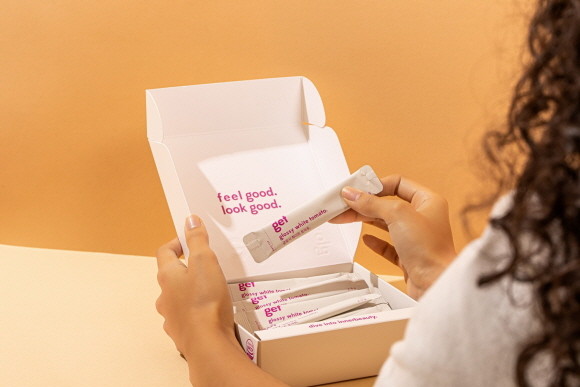'글로시 화이트 토마토'는 건강한 피부를 위한 분말형 이너뷰티 제품으로 화이트 토마토, 효모추출물(L-글루타치온 10%), 비타민C를 주원료로 사용했다.