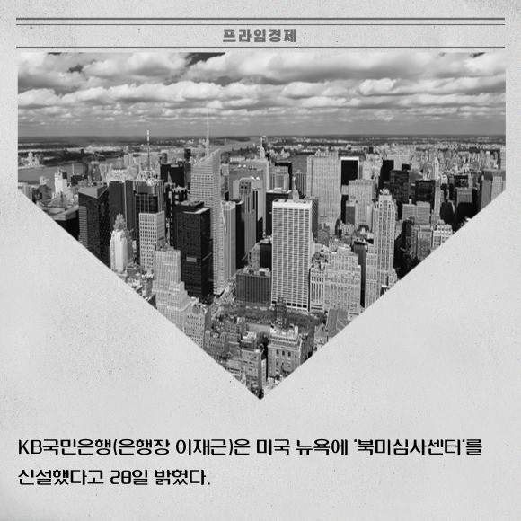 [프라임경제] KB국민은행(은행장 이재근)은 미국 뉴욕에 '북미심사센터'를 신설했다고 28일 밝혔다.