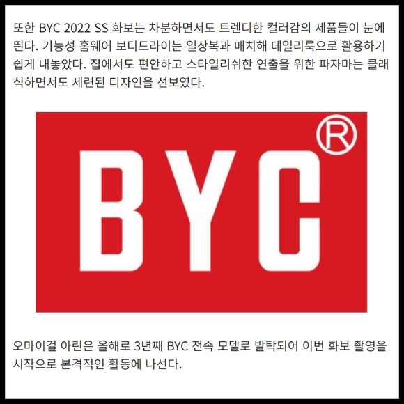 [카드] BYC, 아린과 함께한 2022 SS 화보 공개