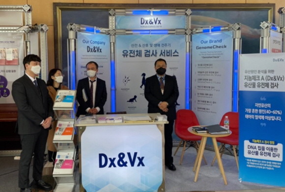 디엑스앤브이엑스는 서대문구 스위스 그랜드 호텔에서 열린 제13차 (직선제)대한산부인과의사회 춘계학술대회에서 산전산후 및 생애전주기 유전체 분석 서비스 '지놈체크'를 소개했다. © 디엑스앤브이엑스
