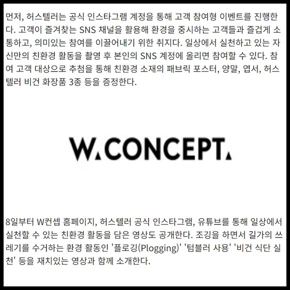 [카드] W컨셉 뷰티PB 허스텔러, 식목일 맞아친환경 캠페인 진행