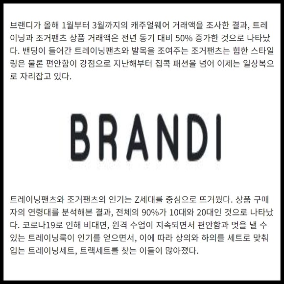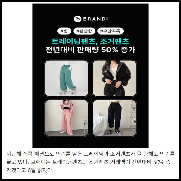 [카드] 브랜디, 트레이닝·조거팬츠 전년대비 판매량 50%↑