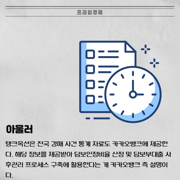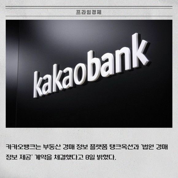 [프라임경제] 카카오뱅크는 부동산 경매 정보 플랫폼 탱크옥션과 '법원 경매 정보 제공' 계약을 체결했다고 8일 밝혔다.