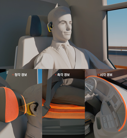 졸음운전이나 운전자가 한 눈을 파는 상황에서도 빠르게 전방을 주시하도록 돕는 효과도 입증했다. 엠브레인이 운전자의 부주의한 상황을 실시간으로 감지해 목 주변의 스피커나 진동시트 등으로 경고를 주는 방식이다.