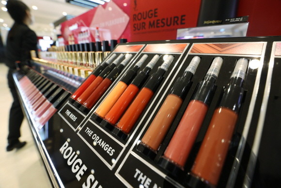 마스크 착용 이후 판매가 부진하던 립스틱 제품 등 색조 화장품 판매 증가도 나타나고 있다. © 연합뉴스