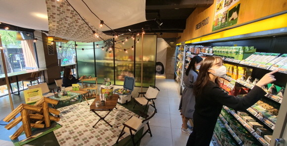 우선 이마트24 삼청동점은 이달 20일부터 5월27일까지 코오롱스포츠 캠핌용품으로 구성된 '캠프닉(캠핑+피크닉)' 체험 공간을 선보인다. 매장을 찾은 고객들이 방문만으로도 도심 속 힐링을 경험할 수 있도록 야외 캠핑을 테마로 인테리어를 단장했다.