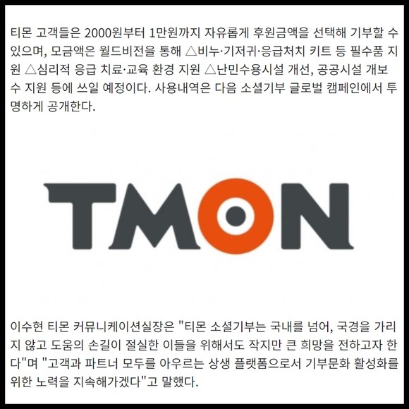 [카드] 티몬 '소셜기부' 강원 산불·우크라이나 긴급구호 나선다