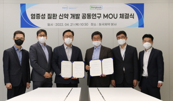 동국제약이 면역신약개발 바이오기업 샤페론과 업무협약을 체결하고, 염증성 질환 신약개발을 위한 공동연구를 진행한다. © 동국제약