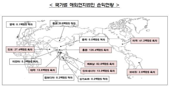지난해 중 해외현지법인 당기순이익은 305만9000달러(3627억원)로 전년대비 62.3%(117만4000달러) 증가했다. 국가별로는 홍콩·베트남 등 7개국에서 위탁·인수 수수료수익 등으로 흑자를 기록한 반면, 중국 등 6개국에서 코로나19 장기화로 인한 △영업제한 △판관비 증가 등으로 적자가 발생했다.
