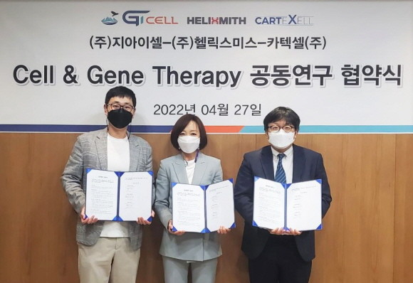 헬릭스미스가 카텍셀, 지아이셀과 세포유전자치료제 공동 연구를 위한 3자 업무협약(MOU)을 체결했다. © 헬릭스미스