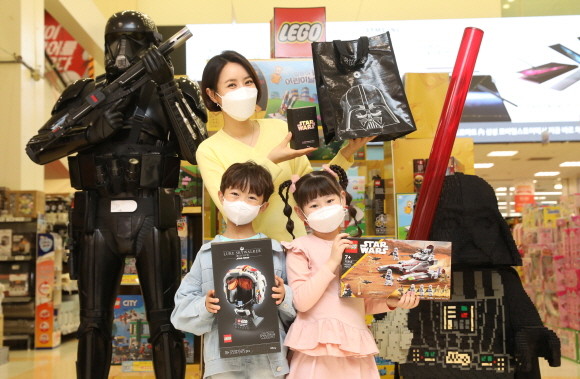먼저, 이마트(139480) 매장에서 28일부터 5월11일까지 2주간 완구 7만원 이상 구매 시 스타워즈 데이를 기념해 제작된 타포린백을 증정한다. 스타워즈의 '다스 베이더' 일러스트가 그려진 검정색 타포린백을 1만개 한정으로 준비했다.