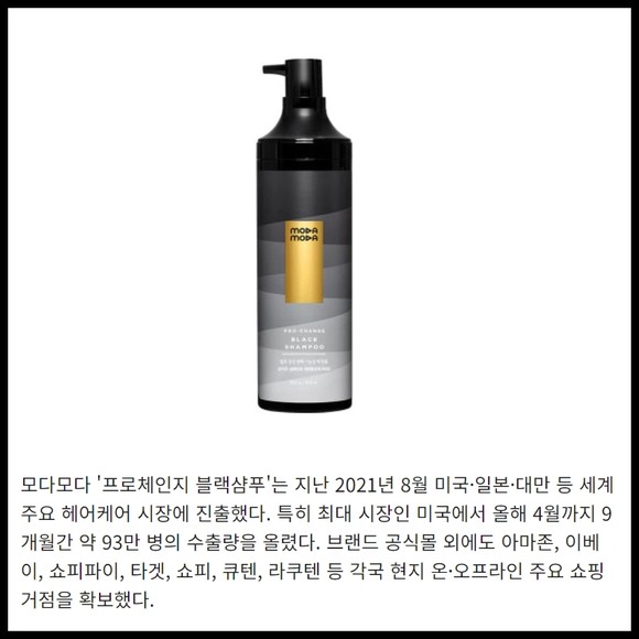 [카드] 모다모다 '프로체인지 블랙샴푸' 글로벌 수출 100만 병 돌파