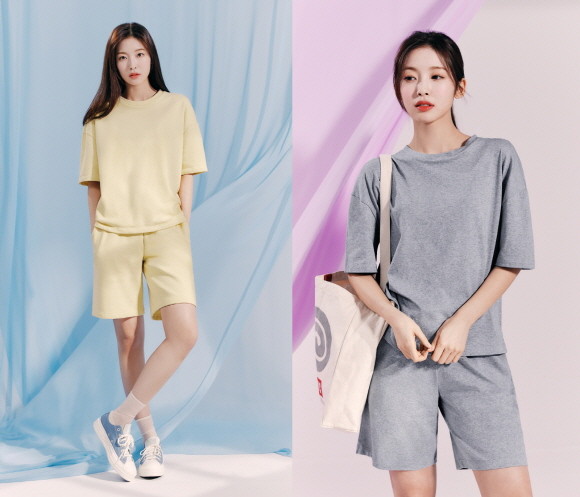 또한 BYC 보디드라이 코튼은 오버핏 티, 하프 팬츠, 원피스 등 베이직한 스타일에 옐로우, 라이트 그레이로 트렌디하게 디자인했다. 일상복이나 모자, 양말, 신발 등을 포인트 매치하면 다양한 패션을 연출할 수 있다.