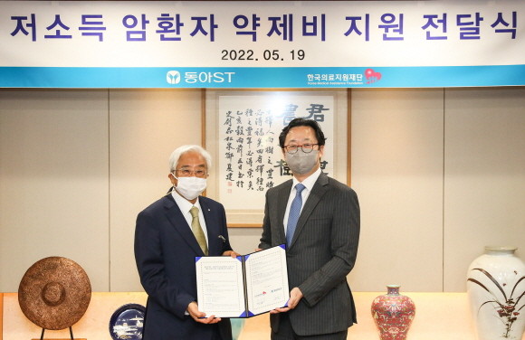 동아에스티는 지난 19일 서울 동대문구 용두동 본사에서 한국의료지원재단과 저소득 암환자 약제비 지원 전달식을 개최했다.