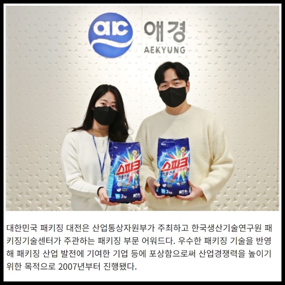 [카드] 애경, 대한민국 패키징 대전에서 '한국생산기술연구원장상' 수상