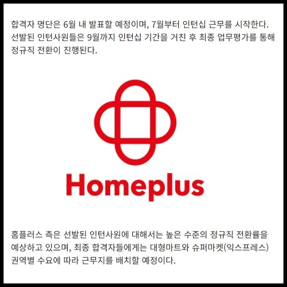 [카드] 홈플러스, 점포 근무 인턴사원 공개채용