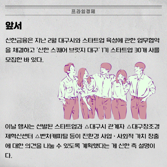 [프라임경제] 신한금융그룹(회장 조용병)은 지난 2일 대구 소재 스타트업 육성 플랫폼인 '신한 스퀘어브릿지 대구'에서 프로그램 시작 기념 오리엔테이션 행사를 진행했다고 3일 밝혔다.