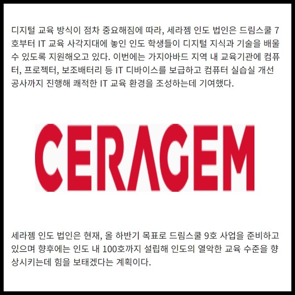 [카드] 세라젬, 인도 학교 리모델링 지원사업 '드림스쿨' 8호 준공