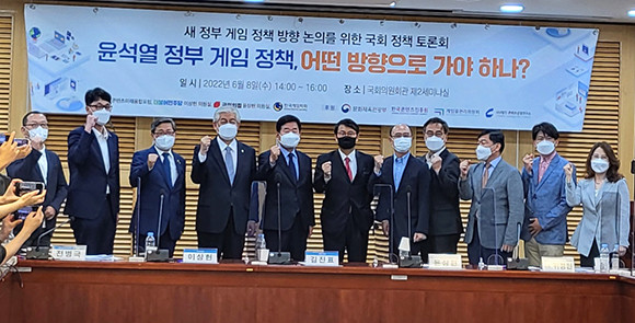 새 정부 게임 정책 방향 논의를 위한 국회 정책토론회는 이상헌 더불어민주당 의원과 윤상현 국민의힘 의원이 주최했고, △김진표 국회의원(국회의장 내정 상태) △전병극 문화체육관광부 제1차관 △최형두 국민의힘 의원 △위정현 콘텐츠미래융합 포럼 회장 △정윤재 문화체육관광부 게임콘텐츠산업과 과장 △임혜진 변호사 △김철학 한국e스포츠협회 사무총장 △최동진 한국메타버스산업협회 본부장 △김윤명 상명대 특임교수 등이 참석했다.