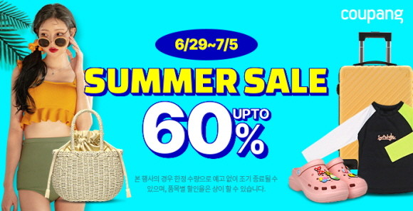 쿠팡이 여름 아이템을 최대 60% 할인하는 '써머 세일'을 연다.