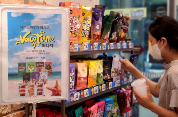 이마트24는 7월 한달 간, 컵얼음에 부어 마시는 파우치 음료를 구매하면서 모바일 앱 통합바코드를 스캔 하면, 파우치 음료 1개 당 스탬프 1개가 생성되며 해외여행 상품권 경품 이벤트에 자동으로 응모된다.