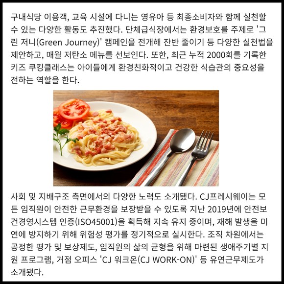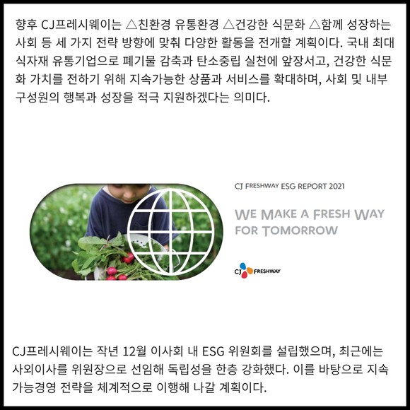 [카드] CJ프레시웨이, 첫 ESG 보고서 발간