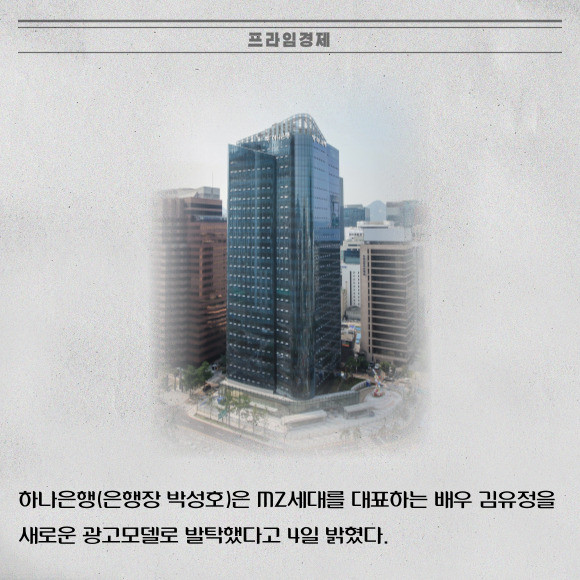 [프라임경제] 하나은행(은행장 박성호)은 MZ세대를 대표하는 배우 김유정을 새로운 광고모델로 발탁했다고 4일 밝혔다.