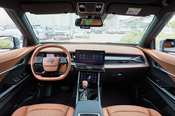 3분할 와이드 디지털 클러스터는 상하단부가 커트된 스티어링 휠과 함께 운전자에게 최대한 넓은 시계를 제공하고, 운행에 관련된 모든 정보를 직관적으로 확인할 수 있다. 8인치 버튼리스 디지털 통합 컨트롤 패널은 운전자가 조작할 수 있는 기능을 통합해 컨트롤 할 수 있도록 편의성을 극대화 했다.