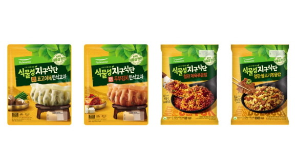 풀무원식품이 식물성 식품 전문 브랜드 '식물성 지구식단'의 첫 번째 제품으로 냉동만두 '한식교자' 2종과 냉동볶음밥 신제품 '식물성 철판 제육볶음밥'을 선보인다. © 풀무원