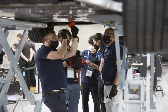 현대차는 전동화 시대에 따른 전기차 정비 역량을 강화하기 위해 전기차 정비 특화 워크숍 'EV 테크 랩(Tech Lab)'을 개최했다. 워크숍은 △미국 △유럽 △아시아 등 해외 전기차 서비스 부문 핵심 정비 인력 25명을 한국으로 초청해 지난 6월28일부터 7월6일까지 총 9일간 진행됐다.
