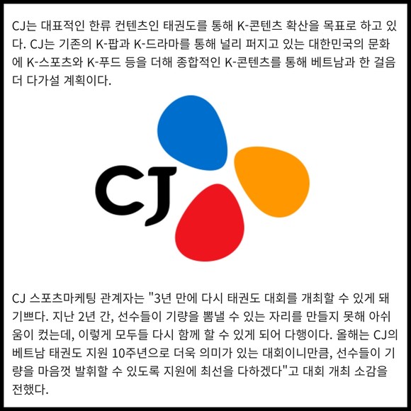 [카드] CJ그룹, 베트남에서 태권도와 함께 "K-콘텐츠 확산"에 힘쓴다