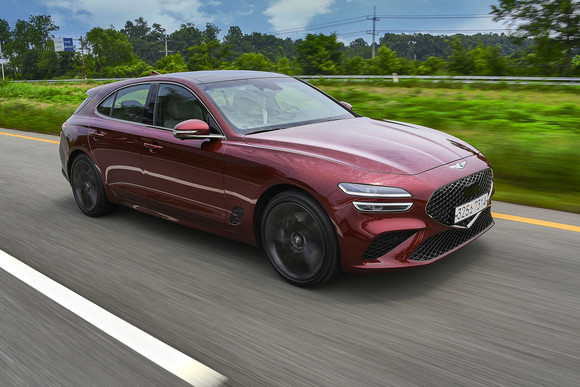 쿠페와 같은 날렵한 비율을 갖춘 G70 슈팅 브레이크. = 노병우 기자