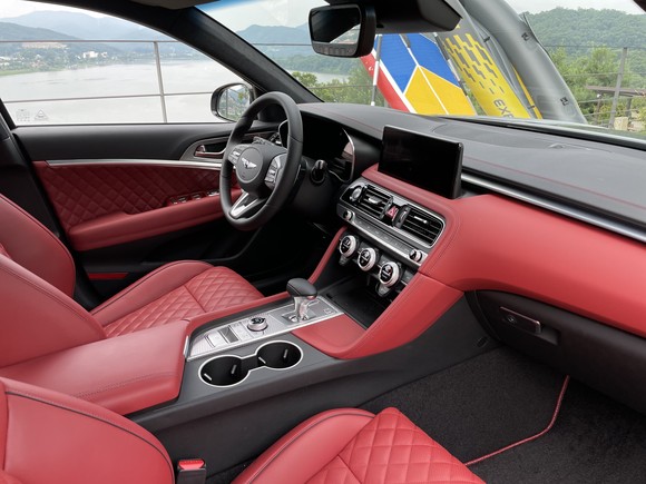 실내는 전투기 조종석을 닮은 G70의 운전자 중심 구조를 계승해 직관적인 실내 레이아웃을 구현했다. = 노병우 기자
